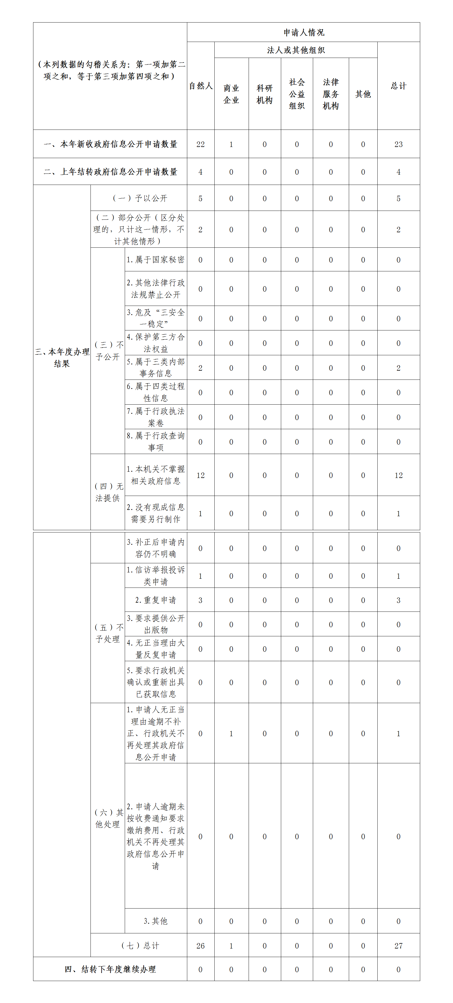 (二)提升依申请公开服务质量。精准适用《条例》,用心用情做好依申请公开办理工作,加强与申请人沟通,积极稳妥办理,2021年共依法依规作出答复27份,全年未发生因政府糖心vlog公开 申请处理不当引发的行政复议或诉讼。