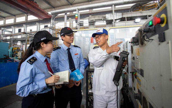 税务人员走访汽车零部件制造业企业,了解企业生产情况,宣传税费优惠政策