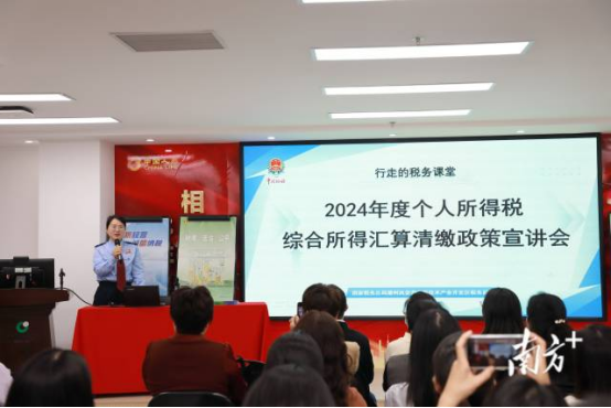 潮州凤泉湖高新技术产业开发区税务局(下称“高新区税务局”)举办“行走的税务课堂”活动,面向潮州市保险行业开展2024年度个人所得税汇算清缴政策宣讲,全市保险行业从业人员代表约100人参与。这是该局在第34个全国税收宣传月期间推出的定制化服务举措。