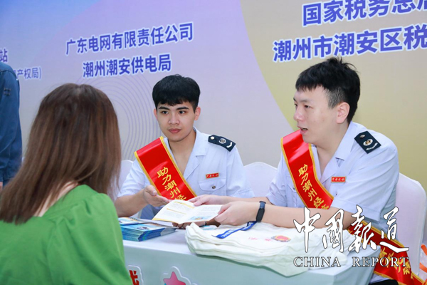 潮州市潮安区税务局深入调研食品产业发展情况,梳理纳税人缴费人关注的高频涉税事项和相关税收优惠政策,组建税收志愿者服务队,提供税收辅导和咨询服务,为活动现场送去一抹“税务蓝”。