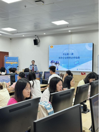 青税讲师授新知,开业首课明方向。大朗税务分局“青锋讲师团”税务干部以一场“新办企业税务必修指南”课程拉开活动序幕。课堂上,结合大学生创业案例,税务干部详细解读开业登记、领购发票、自助办税等业务流程以及小微企业税收优惠政策,并倡导同学们树立依法诚信纳税理念。“毕业之后,我打算和几名同学一起成立工作室,在听了税务哥哥姐姐们的讲解之后,对办税流程和税收政策更加了解了,更加坚定了创业的信心。”会计专业的林同学表示。