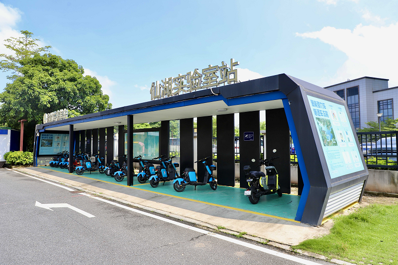 仙湖氢能微交通示范项目中的氢能共享两轮车服务总站,提供氢能车辆的借还服务。人民网 李昊洋摄