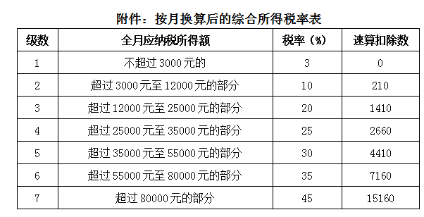 附件:按月换算后的综合所得税率表
