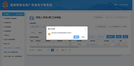(6)全部校验成功后,点击【提交】,弹出“提交确认”对话窗口,点击【确定】。