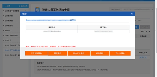 2、特定人员工伤保险申报后,必须当期缴款,超期自动作废申报。
