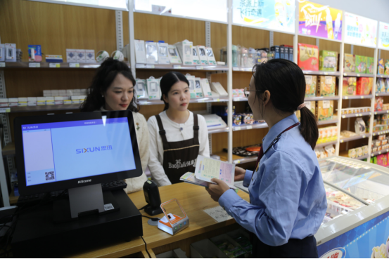 宣传小队首先走进站内便利店,与店员和经营者进行交流。税务干部围绕发票、小规模纳税人申报流程等实际问题,耐心解答疑问,并现场演示通过手机小程序办理涉税业务的操作步骤,为商户提供及时实用的涉税指导。