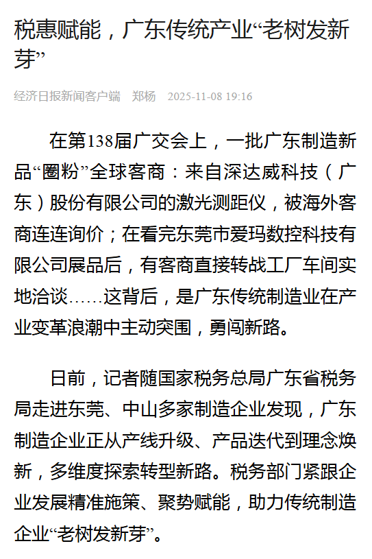 经济日报:税惠赋能,广东传统产业“老树发新芽”
