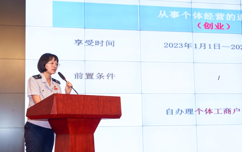 在退役军人全员适应性培训现场,税务业务骨干系统讲解了退役军人就业创业全流程涉税事项。