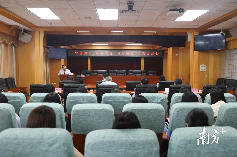 为发挥绿色税制体系对促进环境保护的正向引导作用,助力梅州企业因“绿”而兴,助推梅州经济高质量发展,4月28日上午,梅州市税务局、梅州市生态环境局以及梅江区、梅县区税务局两级四个单位联动,共同举办“绿美梅州 税企同行 向新发展”宣讲会,近百名企业代表应邀参加。