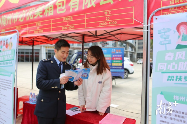 “春风”送岗促就业,同心助力“百千万工程”。近日,蕉岭税务部门组织“嘉应税骑·蕉税e”移动服务团队走进2025“春暖梅州”暨“蕉岭—番禺”劳务对接现场招聘会,为招聘企业和求职者开展税费政策宣传,通过面对面讲政策、解难题、送“春风”,以精细服务助力稳岗就业。