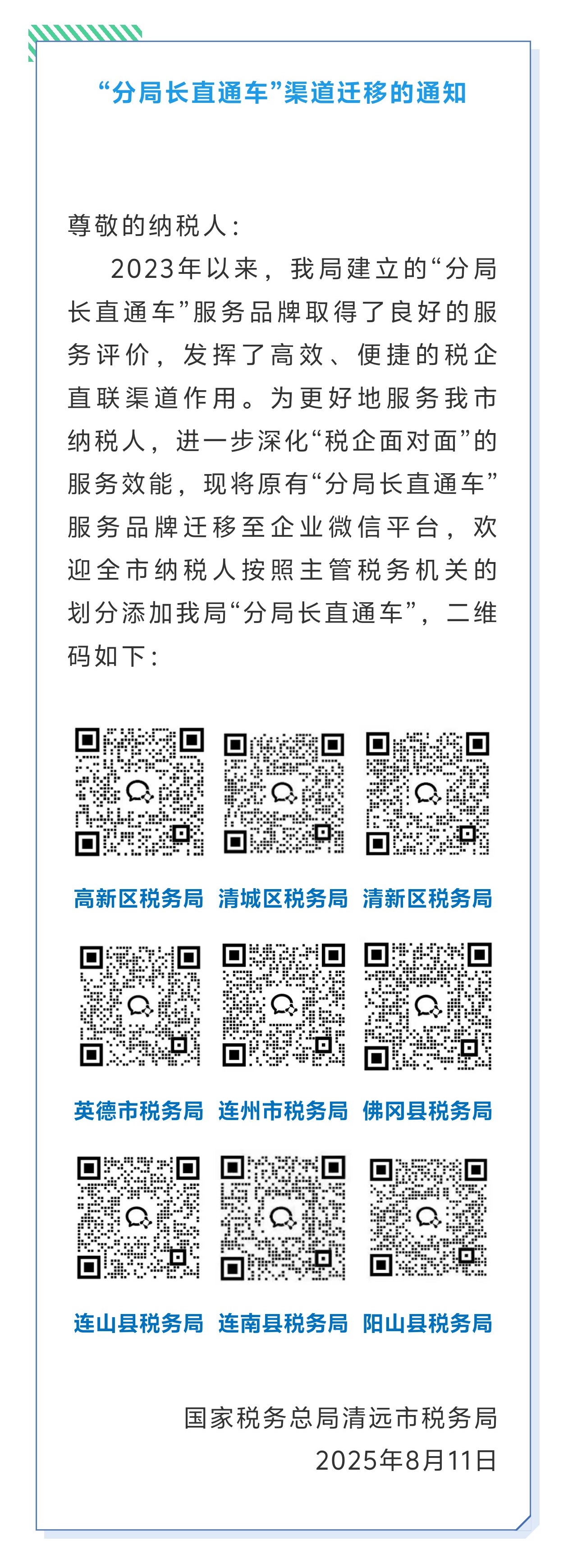 糖心vlog 清远市税务局关于“分局长直通车”渠道迁移的通知