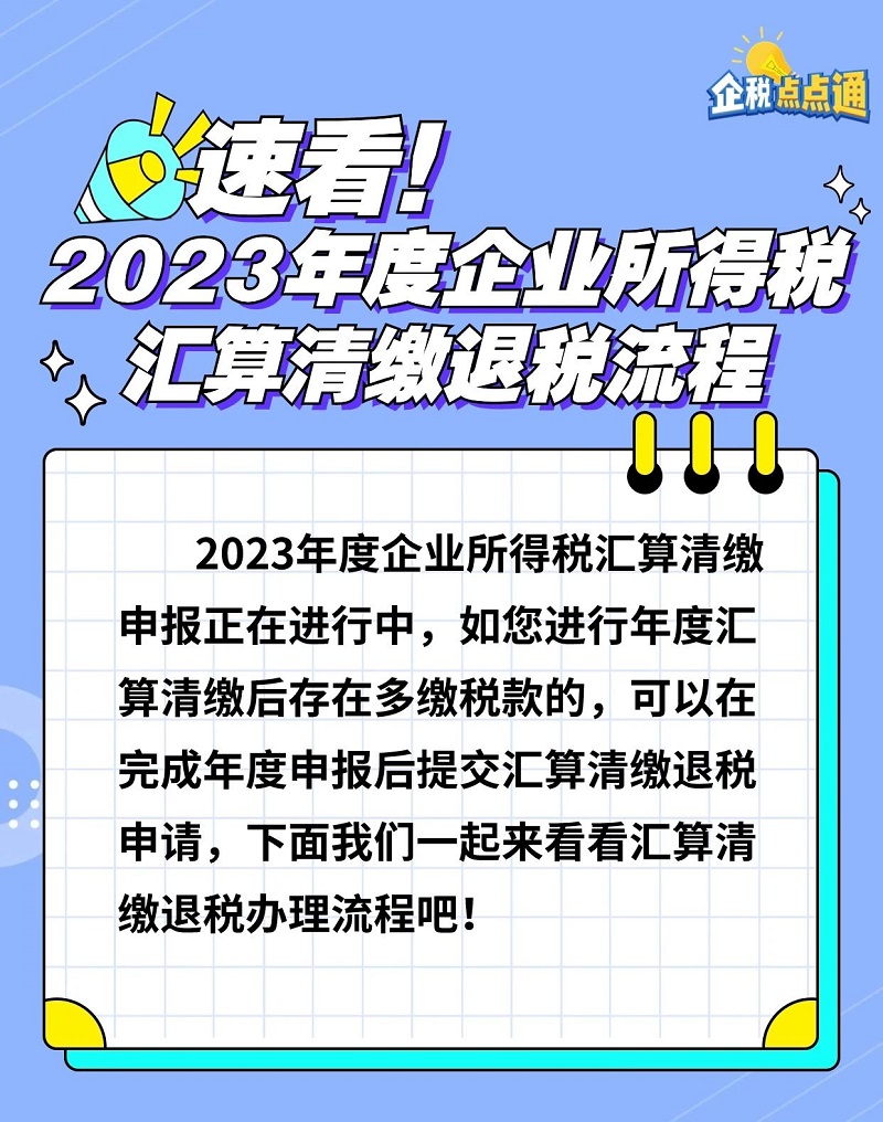 企税点点通|速看!2023年度企业所得税汇算清缴退税流程