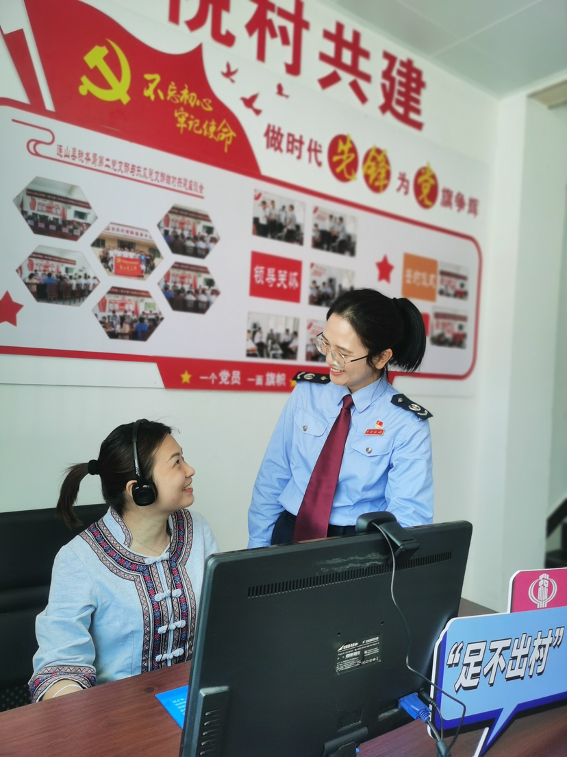 如何将服务触角延伸至“最后一公里”?她的答案是:党群联动。在她的推动下,连山税务局联合县委组织部,以全县53个党群服务中心为枢纽,构建起高质效基层政务税费协同服务网络。通过对中心工作人员分批进行系统培训,实现“一个中心带动整村人”,帮助村民们“足不出村”办理税费业务。同时,“云服务·常在线”平台提供实时辅导与反馈,持续优化服务体验。