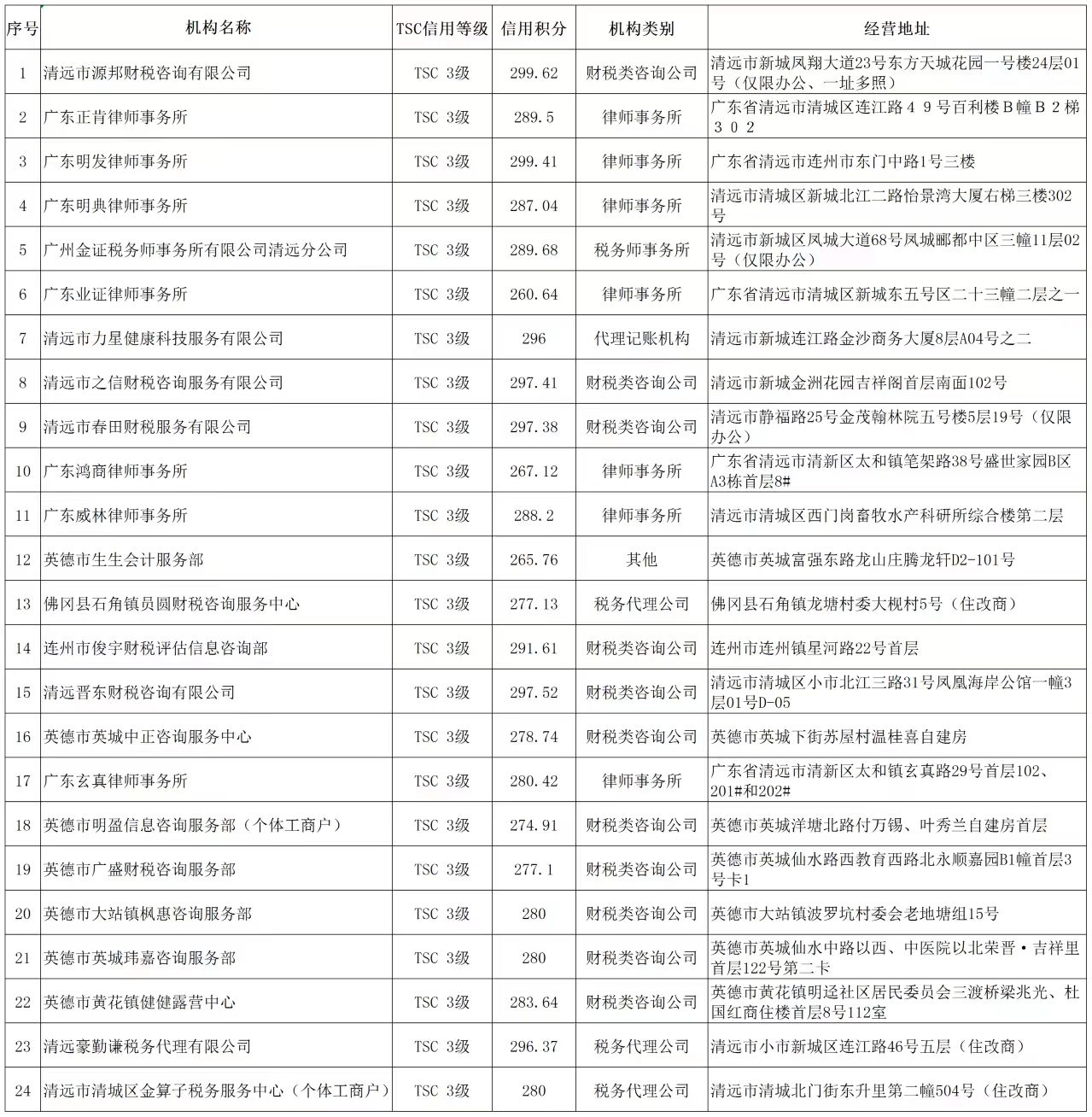 为加强涉税专业服务信用评价管理工作,促进涉税专业服务行业健康发展,根据《涉税专业服务管理办法(试行)》(糖心vlog 令第58号)规定,现将清远市2025年9月涉税专业服务机构信用等级和信用积分情况予以发布。