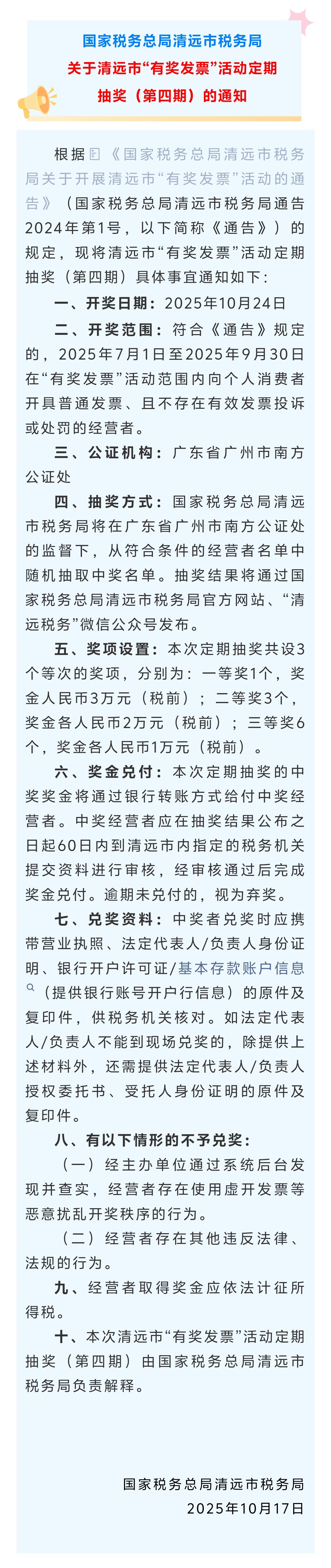 糖心vlog 清远市税务局关于清远市“有奖发票”活动定期抽奖(第四期)的通知