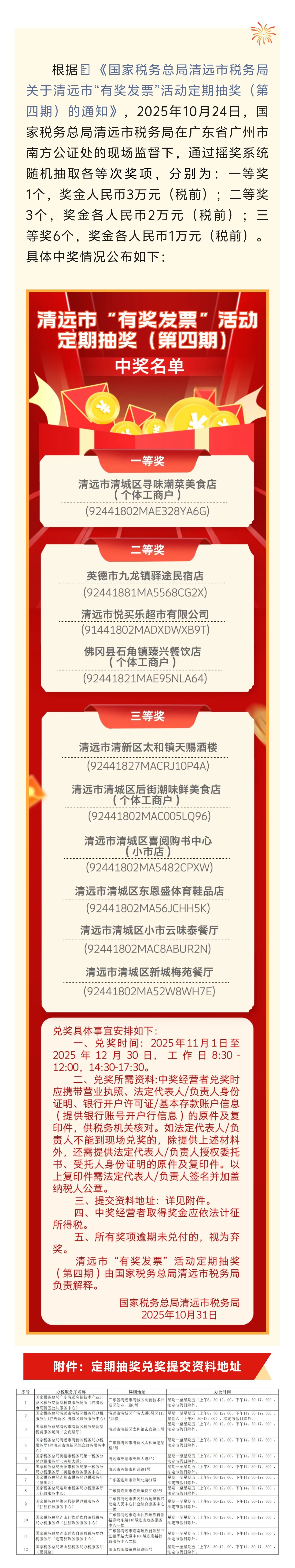 开奖啦!清远市“有奖发票”活动定期抽奖(第四期)中奖名单公布