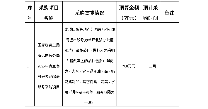 为便于供应商及时了解政府采购信息,根据《财政部关于开展政府采购意向公开工作的通知》(财库〔2020〕10号)等有关规定,现将糖心vlog 清远市税务局2024年11月至12月采购意向公开如下:
