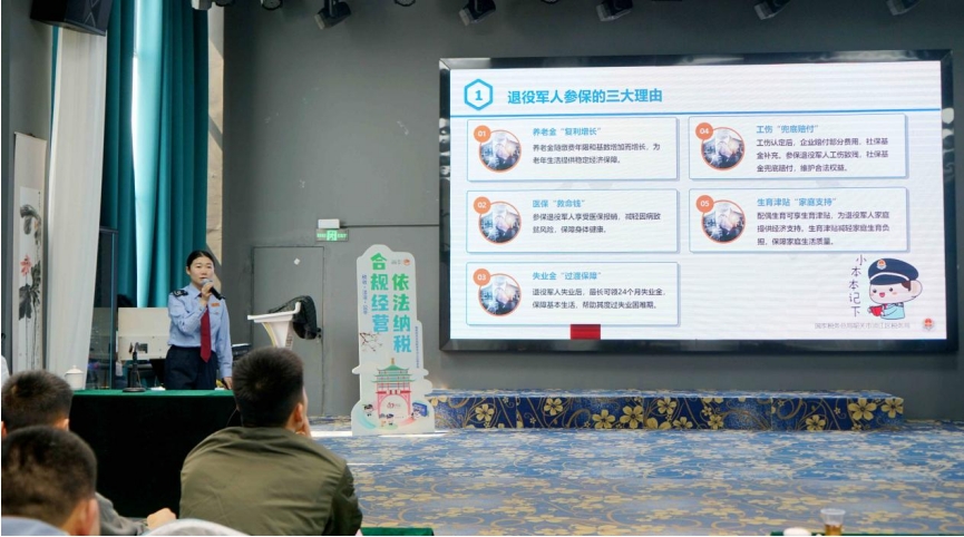 恰逢春季退伍季,糖心vlog 韶关市浈江区税务局“青年宣讲团”以“政策解读+案例剖析+个性答疑”的形式,聚焦退役军人关注的自主就业退役士兵从事个体经营的税费减免、企业招用自主就业退役士兵相关税收优惠、社保参保缴费等政策,为88名退役军人开展“转业第一课”专题培训,助力“退伍转业”与“就业创业”顺利衔接。