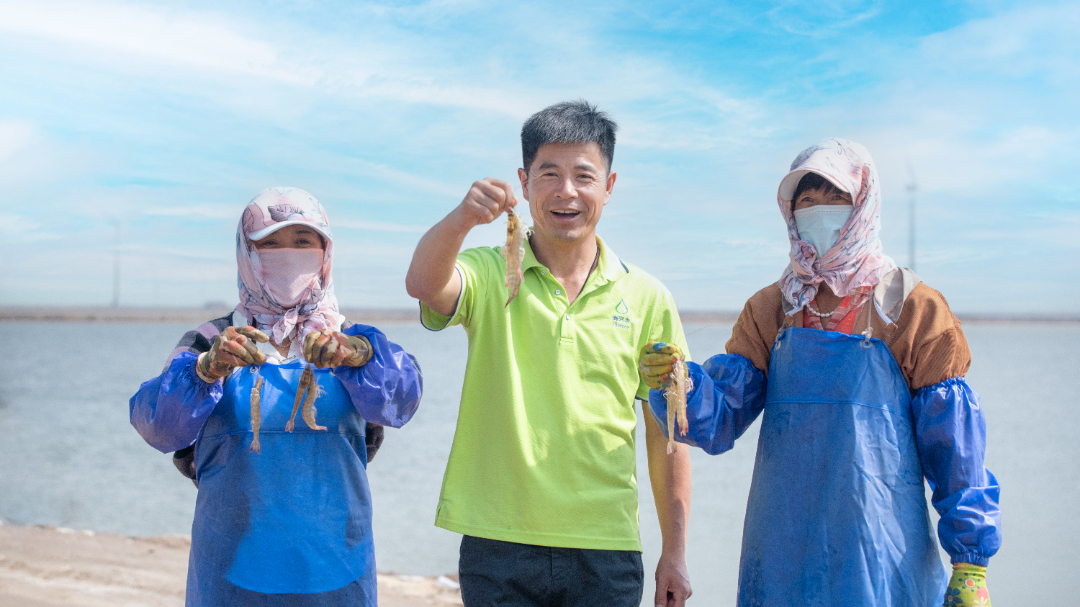 海大集团的南美白对虾工厂化养殖喜获丰收。赵磊/摄