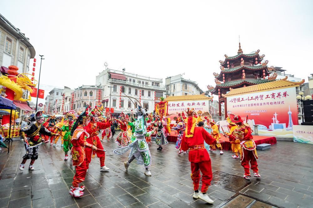气势十足的英歌舞,流光溢彩的走马宫灯,优美动听的潮剧潮乐……4月1日,汕头市税务局在小公园历史文化街区举办汕头市第33个全国税收宣传月启动仪式,将传统文化元素融入税收宣传活动,借助潮汕大锣鼓、英歌舞、潮剧等群众喜闻乐见的艺术形式,让税收文化扎根群众、深入人心,也让传统文化焕发出历久弥新的生命力。
