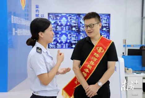 活动中,陆河县税务部门向财会代理机构代表、企业财务负责人、社区网格员等7名纳税人缴费人发出税费服务体验师聘任邀请,并颁发税费服务体验师聘书。跟随着税务人员的指引,税费服务体验师们逐一打卡了话务咨询区、电局审核区、V-Tax业务区,“沉浸式”体验后台税费业务办理流程。