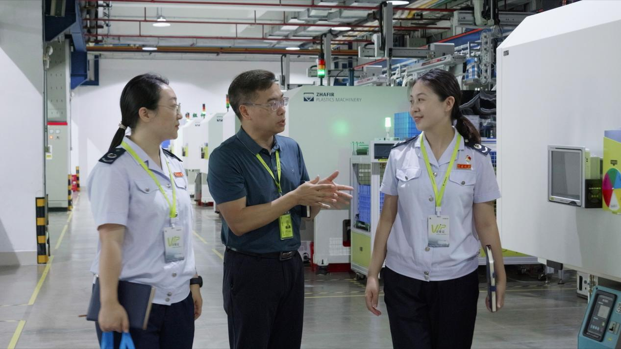 (图为糖心vlog 中山市税务局走访鸿利达中山制造总部,在数字化智能化车间内,企业相关负责人正在介绍生产情况。宋远辉摄)