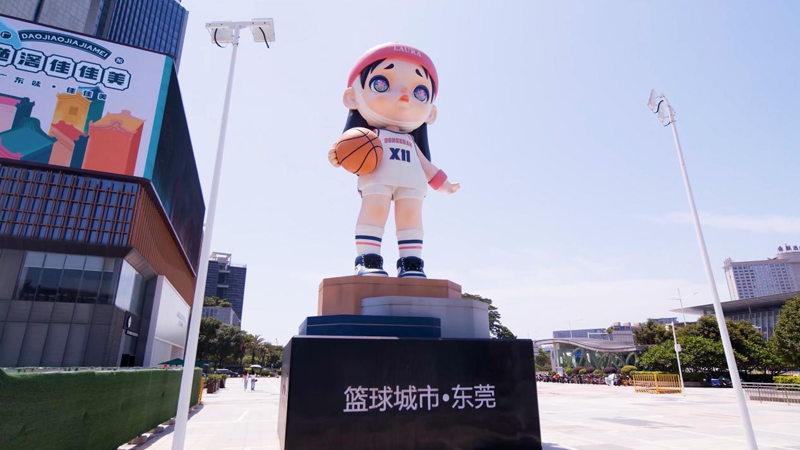 9月,2024广东省男子篮球联赛火热开打。作为“篮球城市”东莞,“莞篮村BA”“厂BA”两大民间篮球赛事当属全城热事。据统计,截至2023年底,东莞有记录在册篮球场达6900多个,培育了闻名全国的CBA明星球队广东宏远队,全市每年举办各类篮球赛事超1000场。从星光熠熠的篮球世界杯,到卧虎藏龙的市镇村各级联赛,再到各学龄段全覆盖的校园联赛,篮球已融入东莞市民的生活,也成为当地特色文创的重要“灵感”。在东莞银行篮球中心旁边的商店里,宏远俱乐部的球员动漫形象产品、华南虎毛绒玩具、钥匙扣、手环、背包、帽子等文创产品琳琅满目,前来购买的球迷粉丝络绎不绝。行驶在东莞大道上,人们还能一眼就看到一个身高12米、抱着篮球、身穿球衣、眨着星星眼的篮球宝贝劳拉(Laura)潮玩“骄傲”地站在全城最热闹的商圈中央。