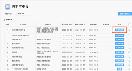2.选择【按期应申报】-【主附税合并申报】,点击“填写申报表”