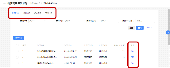 领票员在“发票分配”页签,勾选需要分配的号段,点击“分配”(支持批量分配)。