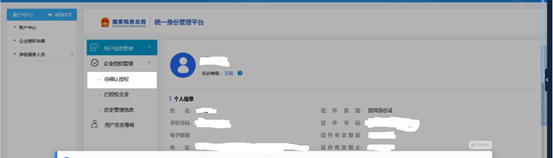 3.添加成功后,由该办税员以自然人身份登录广东省电子税务局(前提是该办税员已经做好电子税务局实名认证),在【我的信息-账户中心-企业授权管理】模块,进行授权确认。界面如图6所示。