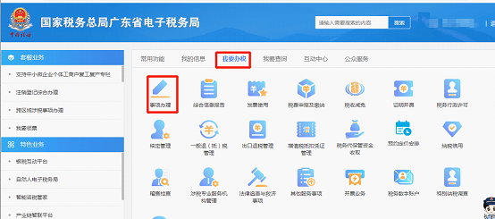 2.点击【我要办税】-【事项办理】