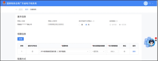1.若选择大厅领票、自助取票柜,则在【取票办税服务厅】下拉选择可取票的办税服务厅。