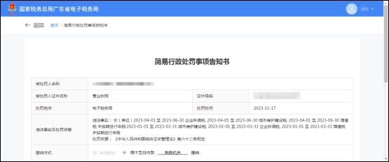 (2)若审批结果发生调整,会重新生成《税务行政处罚决定书(简易)》,纳税人需对处罚决定书进行确认,并缴纳罚款。