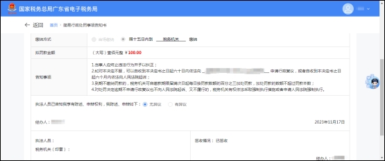(3)若审批结果为不予处罚,会重新生成不予处罚决定书,纳税人无需进行处理。