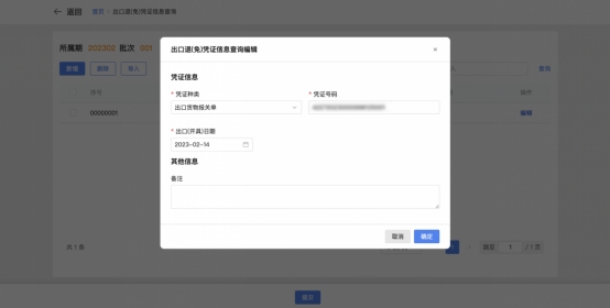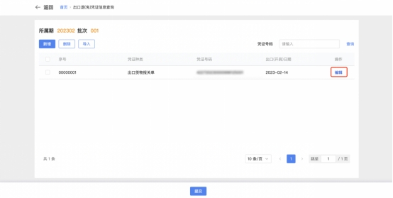如纳税人需要对已采集凭证种类、凭证号码、出口(开具)日期等信息进行修改时,可在对应的信息栏,点击【编辑】,对数据进行修改。