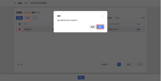 如纳税人需要刑除已采集的凭证信息时,勾选需要删除的信息,点击【删除】-【确定】,即可删除不需要的数据。