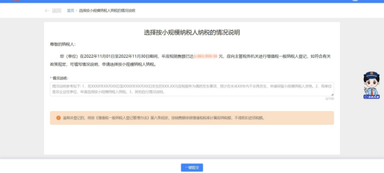 (三)纳税人录入完情况说明后,点击“一键提交”,本业务办理成功。