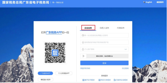 1. 纳税人可以注册地企业的身份从“企业业务”入口进行登录。