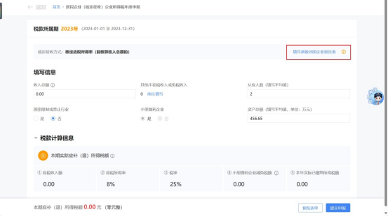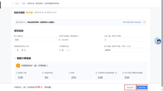 2.若纳税人为核定应税所得率(能核算成本费用总额的)系统会根据同期财务报表或发票信息自动预填成本费用总额、从业人数、资产总额等,若与实际情况不符,可直接进行修改。若纳税人未报送同期财务报表的,需纳税人自行填写数据。