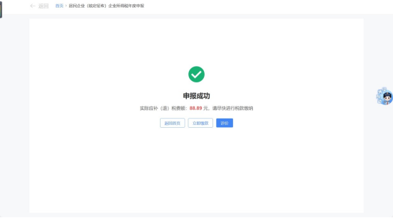 填写确认完成后,点击【确定】提交申报表,纳税人申报成功后,可以通过点击“立即缴款”进行税款缴纳,完成本次申报涉及的税费款缴纳。