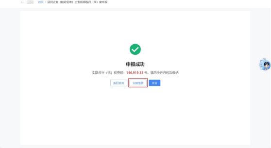 申报成功后,点击【立即缴款】进行税款缴纳,完成本次申报涉及的税费款缴纳。