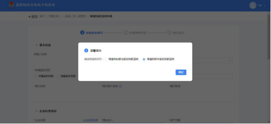 选择【增值税期末留抵税额退税】,点击【确定】,进入增值税期末留抵税额退税申请界面。