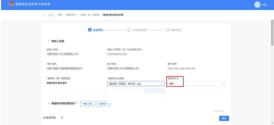进入页面后自动预填纳税人名称、纳税人识别号、银行账户信息和退抵税企业类型等信息。