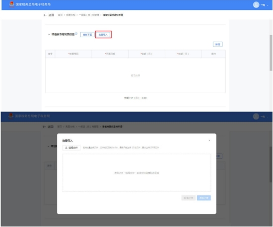 (17)点击【批量导入】,系统弹出批量导入界面。