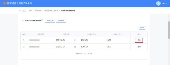 (12)如需删除发票信息,请点击【删除】,系统弹出 “确认删除数据吗”提示框,点击【确定】可删除发票信息。