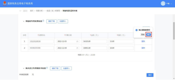 (7)点击界面框右上角【×】关闭批量导入界面,增值税专用发票信息栏自动带出已导入的增值税专用发票信息。