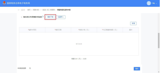 (10)如需批量添加海关进口专用缴款书信息,点击【模板下载】。