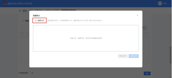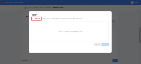 (13)点击【选择文件】,添加《增值税期末留抵税额退税导入模板-海关进口专用缴款书信息.xls》文件。