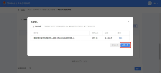 (19)点击【点击上传】上传已选择文件。