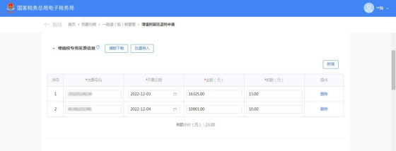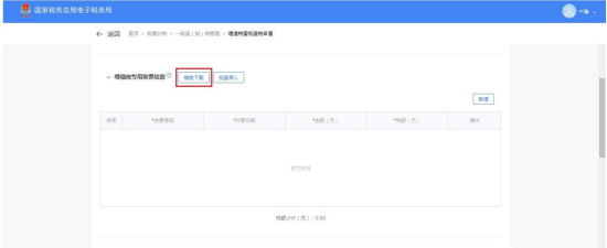 (2)可添加增值税专用发票信息,点击【模板下载】下载《增值税期末留抵税额退税导入模板-增值税专用发票信息.xls》。
